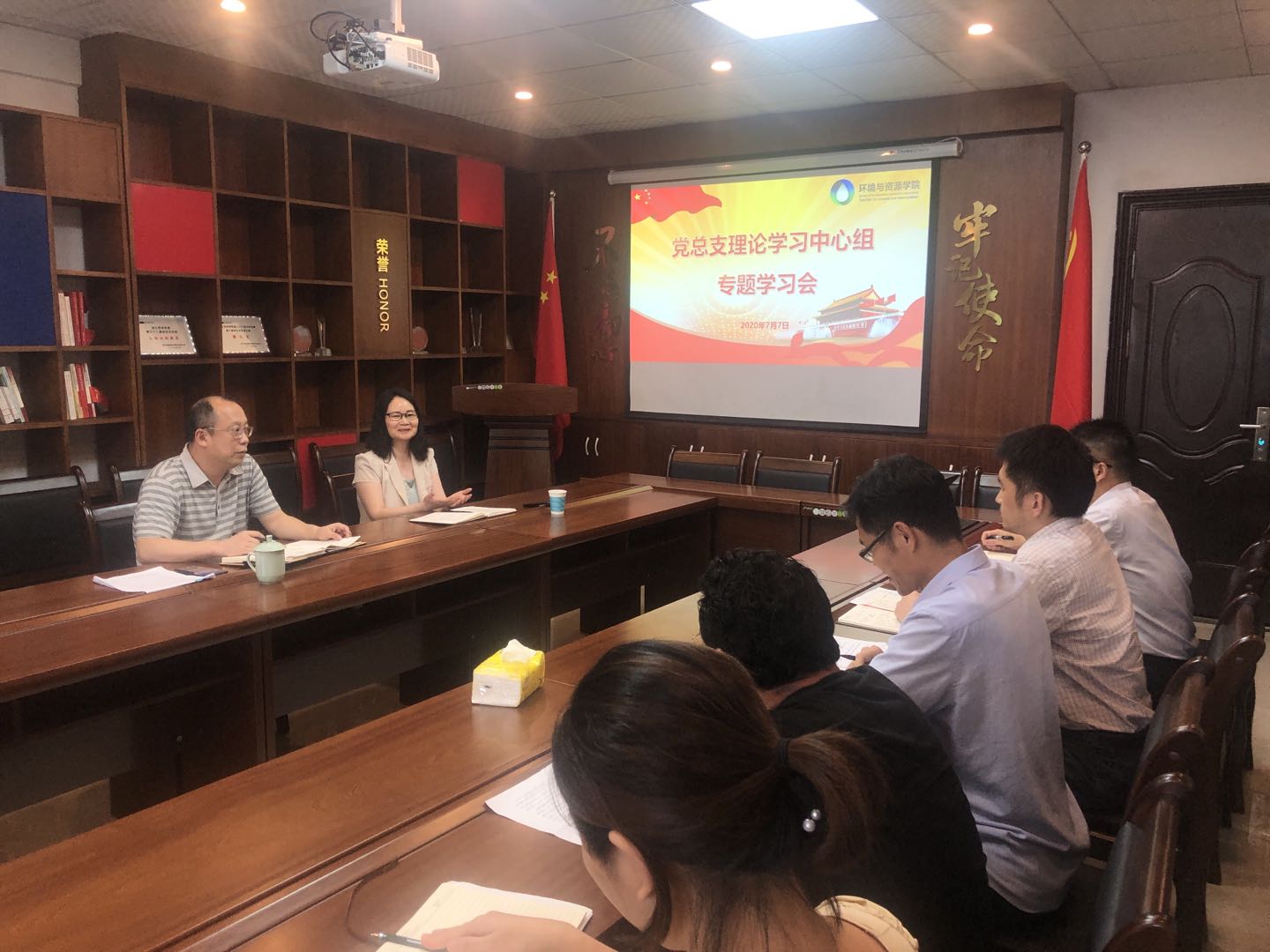 7月7日下午,学院举行党总支理论中心组(扩大)专题学习会。学院党总支书记/院长沙力争教授主持并作学习《中华人民共和国民法典》的专题发言,校纪委陆爱华书记出席并讲话。